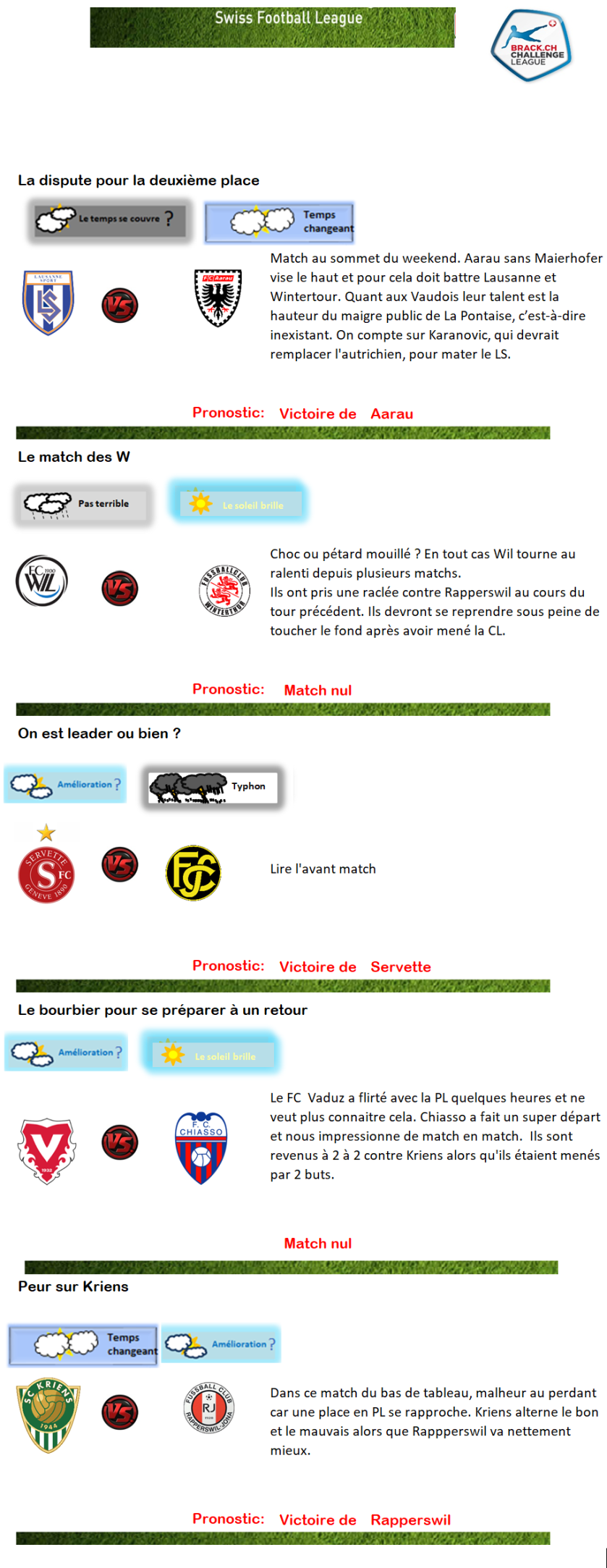 Aarau est quand même favori contre LS qui n’a rien montré jusque là…au mieux ils auront un nul.