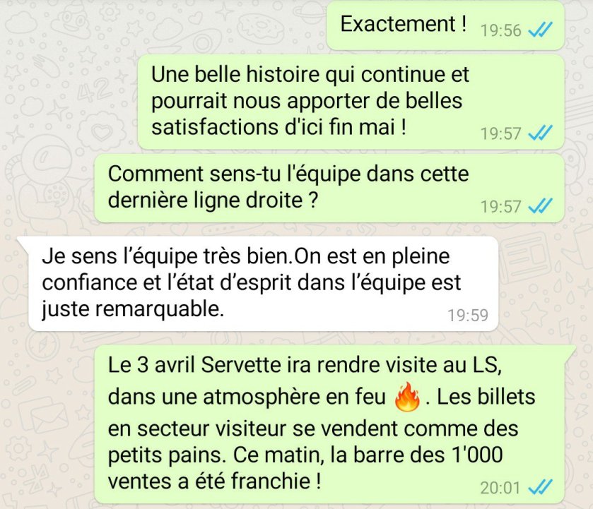 1. J’espère surtout que tout ce monde viennent également vendredi à La Praille contre Winterthur. Car il faut absolument les trois points pour maintenir la pression sur les poursuivants