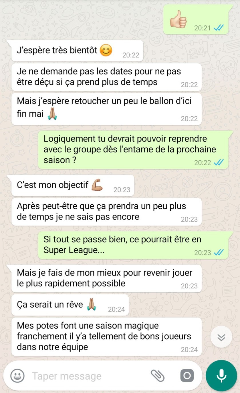 Nous avons pris des nouvelles de Steven, blessé depuis six mois et qui se bat comme un fou pour revenir. Interview whatsapp !