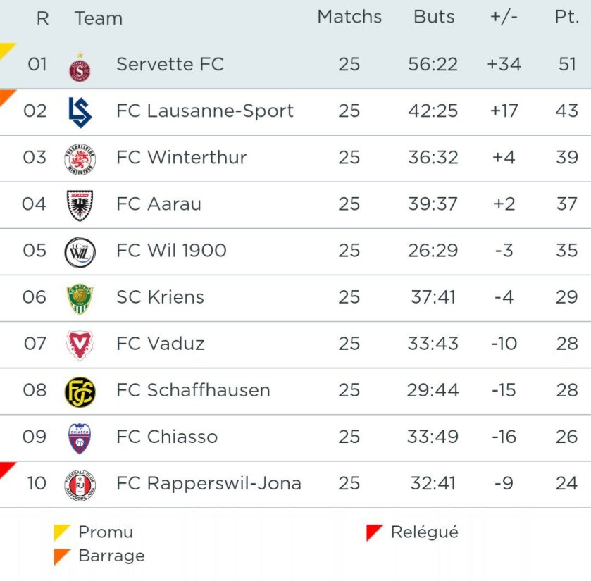Je dis servette fini 1er et aarau 2eme