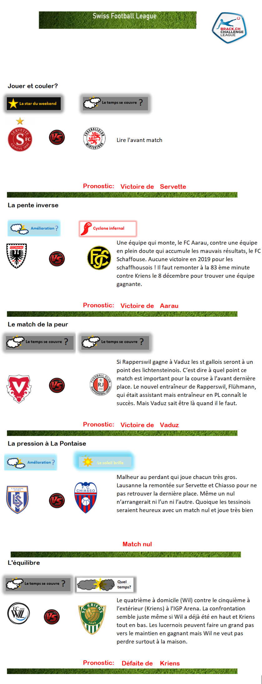 J-1 SFC-FCW J-6 LS-SFC : Le temps sur la Challenge League Tour 26: le printemps servettien se confirme ?