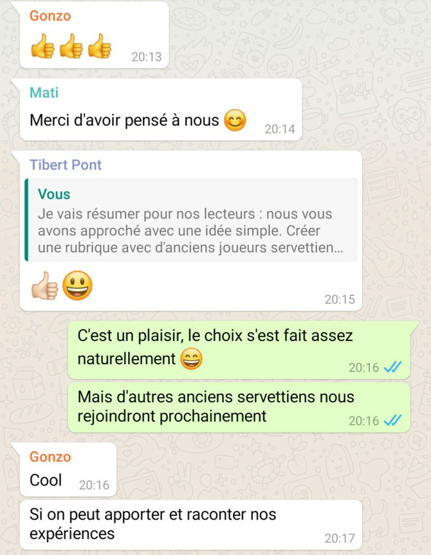 Il était donc naturel pour nous de garder contact. Nous est alors venue l’idée de faire profiter tous les supporters servettiens de leurs expériences, souvenirs ou anecdotes liées à leur vie de sportif d’élite.