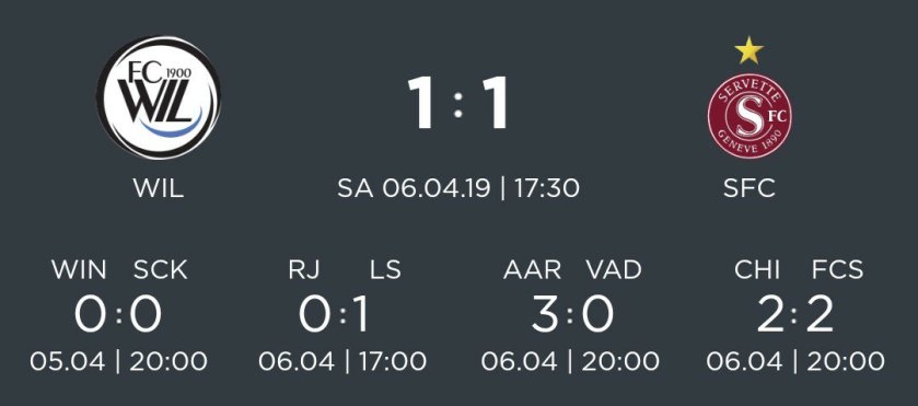 Dans le même temps Servette a grapillé difficilement le nul à Wil avec une égalisation en fin de match. Une égalisation qui permet au SFC de conserver 11 points d’avance sur le LS, 12 en réalité avec l’avantage du goalaverage. En gros, Servette pourrait perdre 4 matchs sur ses 8 dernières partie et resterait encore en tête du classement… Évidemment, on espère une autre issue, mais cela laisse un tapis encore confortable au SFC…