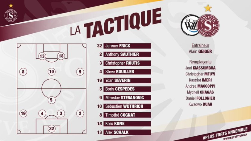 On l a dit, ce match à Wil est loin d être une promenade de santé! Et Servette lors de cette 2e partie de saison, est plutot tres moyen à l extérieur, hormis à Kriens victoire propre. Wil est pas loin d être notre bête noire. Lausanne gagne et donc reviendrait à 10 pts (11 goal average). Je pense qu un point serait parfait. Je l ai dit faut faire 7 points cette semaine pour être tranquille. Alors go chercher ce 1:1 très important
