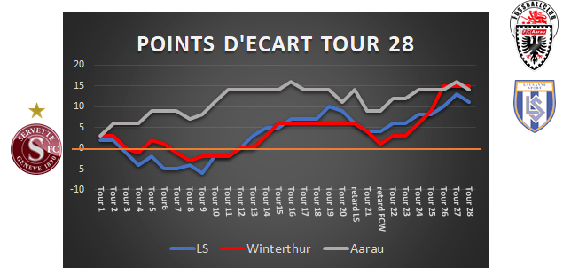 - Winterthour est sûrement hors course (!?) pour la première et la deuxième place mais jouera l’arbitre puisqu’ils iront à Aarau le tour prochain, ensuite nous recevra pour aller ensuite à Lausanne. Son action pourra donc être déterminante