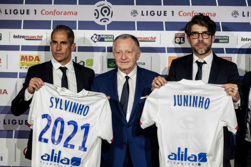 Le président de l’olympique lyonnais entre Sylvinho et Juninho