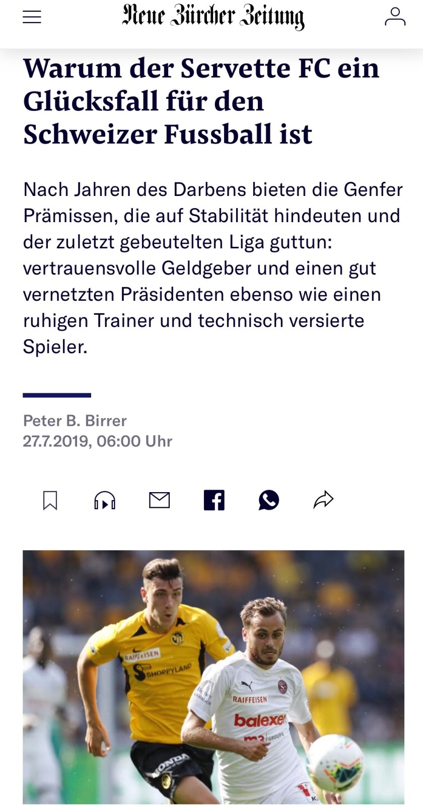 A Zurich également, la presse se réjouit du retour du SFC qui, avec 2 très bons articles, a fait les gros titres de la NZZ déjà 2 fois cette semaine, après le superbe nul à YB (https://www.nzz.ch/sport/super-league-ein-erstes-versprechen-von-aufsteiger-servette-ld.1497388), puis avant le derby de ce soir (https://www.nzz.ch/sport/warum-der-servette-fc-ein-gluecksfall-fuer-den-schweizer-fussball-ist-ld.1498577)