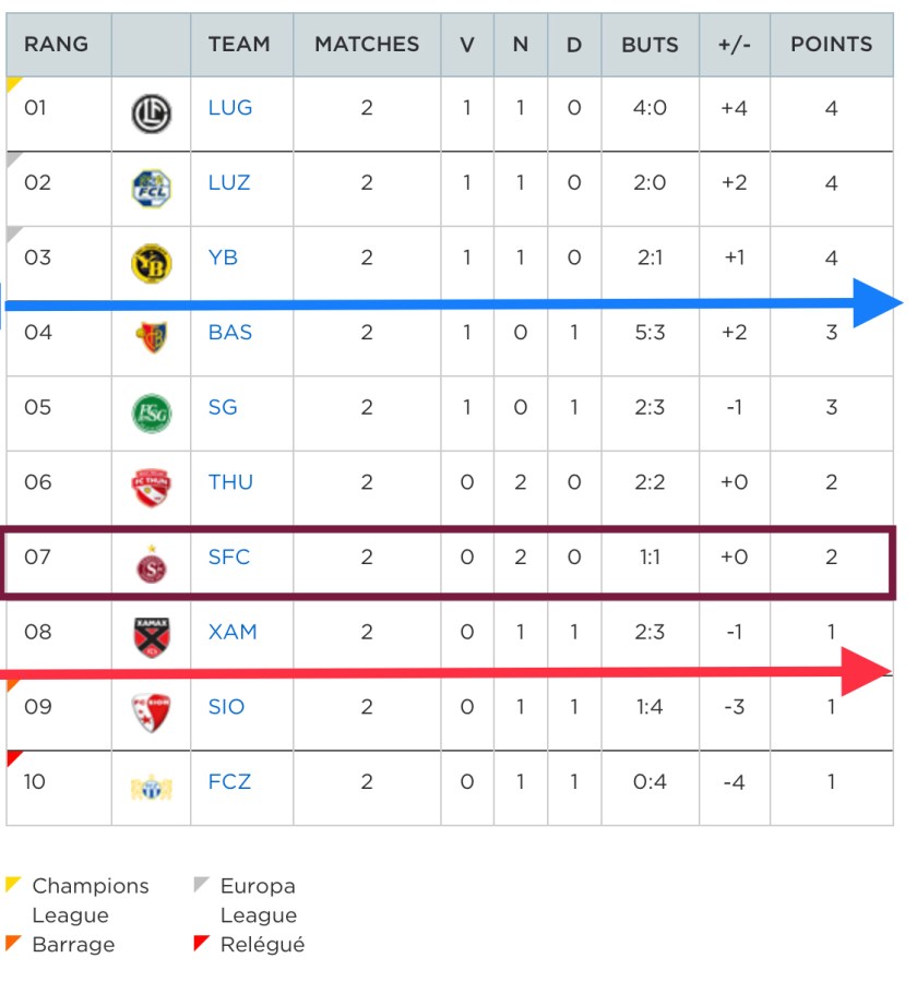 • La dernière place est maintenant à 1 point et l’Europe à 2 points donc on est très proche du graal et si on gagne contre Lucerne on devrait être même européen