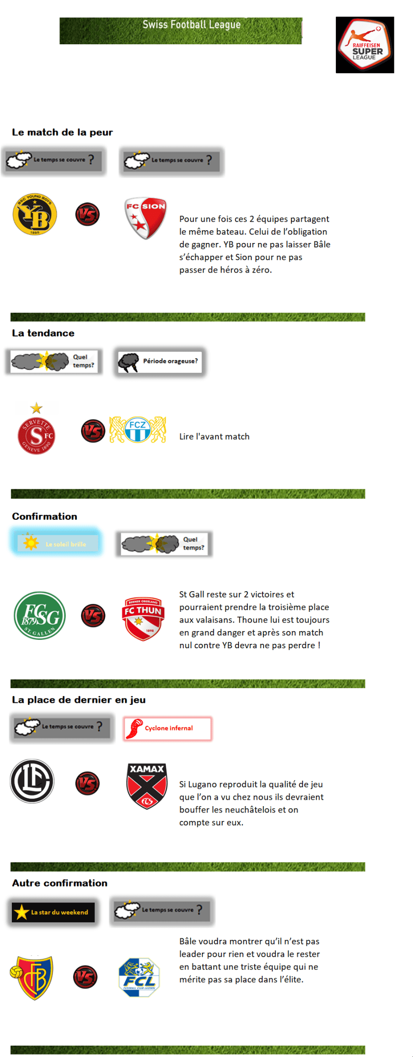 La situation est loin d’être catastrophique. Même en cas de match nul on est quasiment sûrs de garder notre cinquième place… De quoi respirer encore un peu, le temps que les derniers blessés se refassent une santé. Donc au staff médical de faire le boulot, (et aux préparateurs physiques de se sortir les pouces du c…) afin que tout le monde soit sur le pont le 5 octobre à Neuchâtel pour donner à notre coach les meilleurs atouts dans la perspective d’enfin aligner une équipe type sur le terrain de la Maladière…