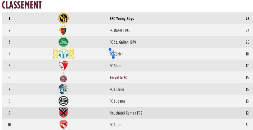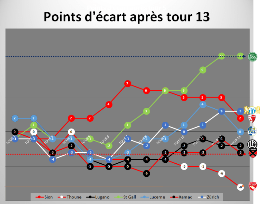 - Le tour 13 n’est pas seulement bon pour Servette vers le bas mais aussi vers le haut puisque nous repassons devant Lucerne grâce à une meilleure différence de buts ( Lucerne a perdu chez lui).
