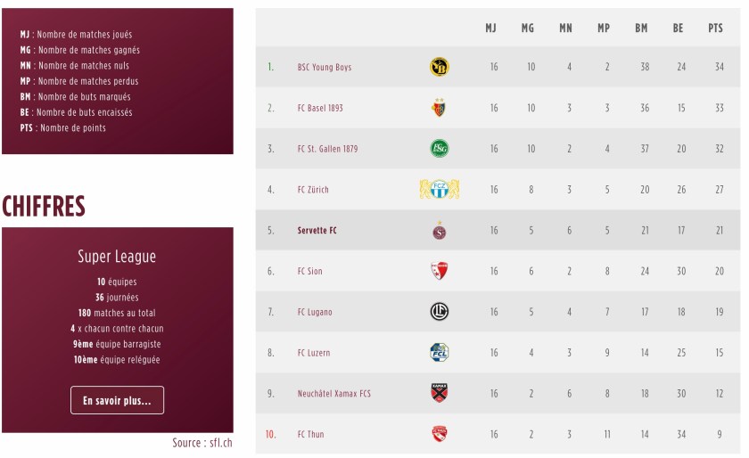 - Personne ne nous dépasse après ce tour mais Sion est à 1 point et Lugano à 2 points