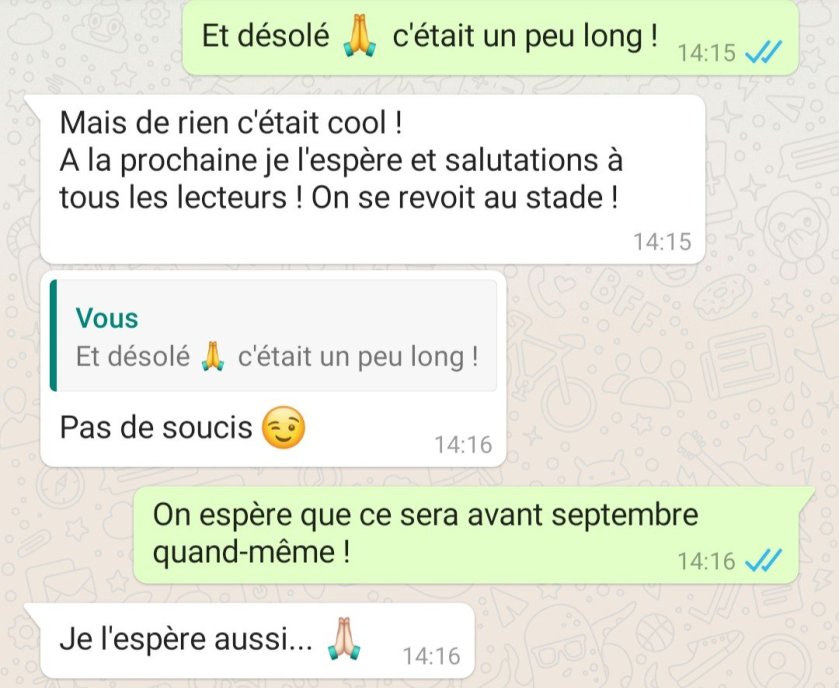 Retour des interviews What’s app aujourd’hui avec Anthony. Toujours aussi sympathique et disponible, le futur papa nous a accordé hier près de 3 heures de son temps. Merci Anthony pour ta gentillesse et ta disponibilité sans faille !