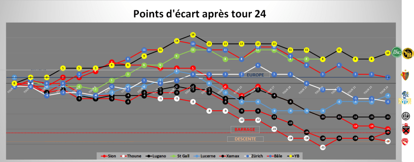 • Tout en haut du classement de Super League, le FC Bâle voit le FC Saint Gall et YB s’envoler à 8 points et le titre partir avec…