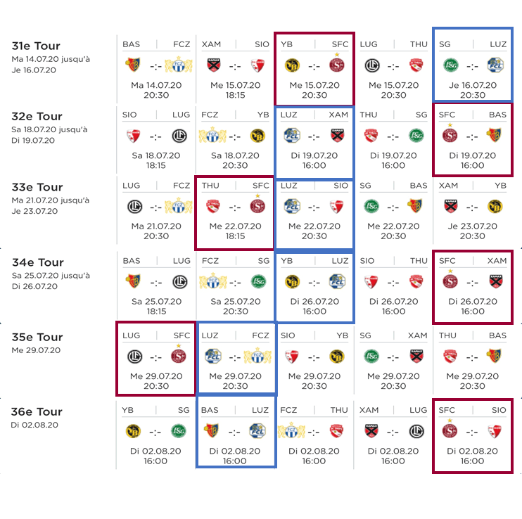- Lucerne doit recevoir Zürich (avec qui sur le terrain?)