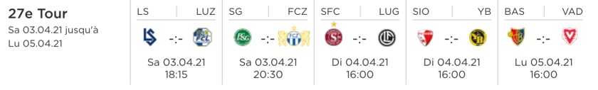 Le temps sur la Super League tour 27