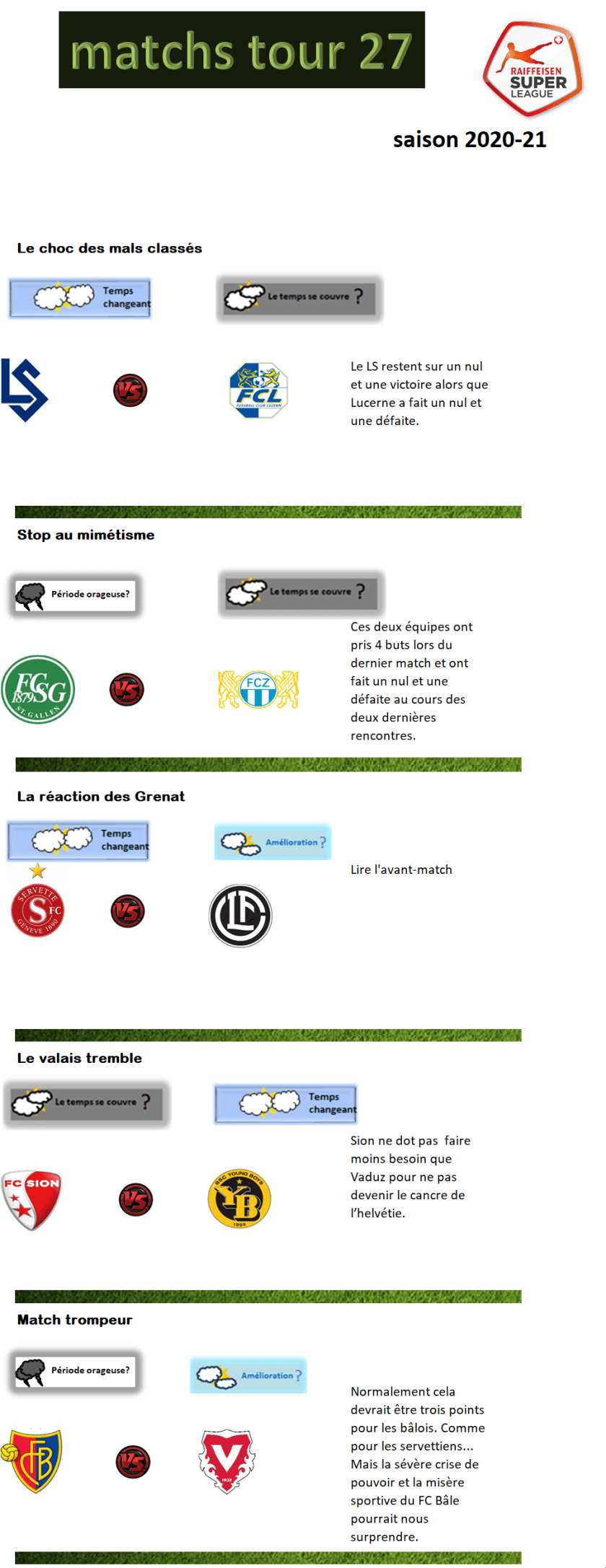 10 réflexions sur « Le temps sur la Super League tour 27 »