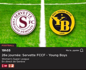 Selon toute vraisemblance, ce soir contre YB à 20h, les joueuses de Servette Chénois seront les reines de la Suisse et détrôneront le très grand FC Zurich Frauen qui gagnait tous les championnats. 7 points d’avance, +62! Versus +52 à Zurich.