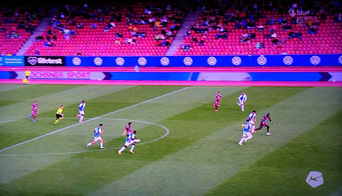 D’accord avec ça, le joueur arrive à faire une passe parfaite malgré la faute de Sauthier qui arrive juste derrière. C’est pas scandaleux non plus, parce que au bout du bout, il y a quand même faute et l’arbitre à droit de revenir dessus. C’est d’autant plus gênant quand on pense à l’action de Schalk où la VAR ne signale pas la faute de main (bras clairement décollé) du défenseur zurichois mais se contente d’annuler (justement) la main de Schalk. Ça fait un peu deux poids, deux mesures tout ça, et au final c’est gênant.