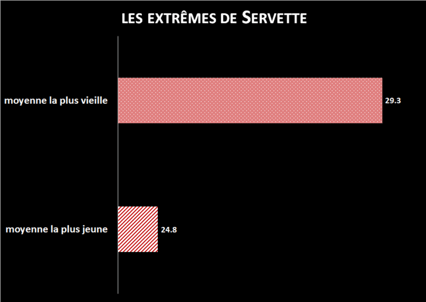 Servette n’est ni bon, ni mauvais mais il faut faire attention avec les moyennes. La présence de Clichy change la valeur de l’âge moyen (le français est présent pour le SFC – FC Sion du 11 ème tour et absent à Berne pour le tour 16 quand nous avons gagné sur le terrain d’YB, voir ci-dessous pour ces 2 extrêmes).