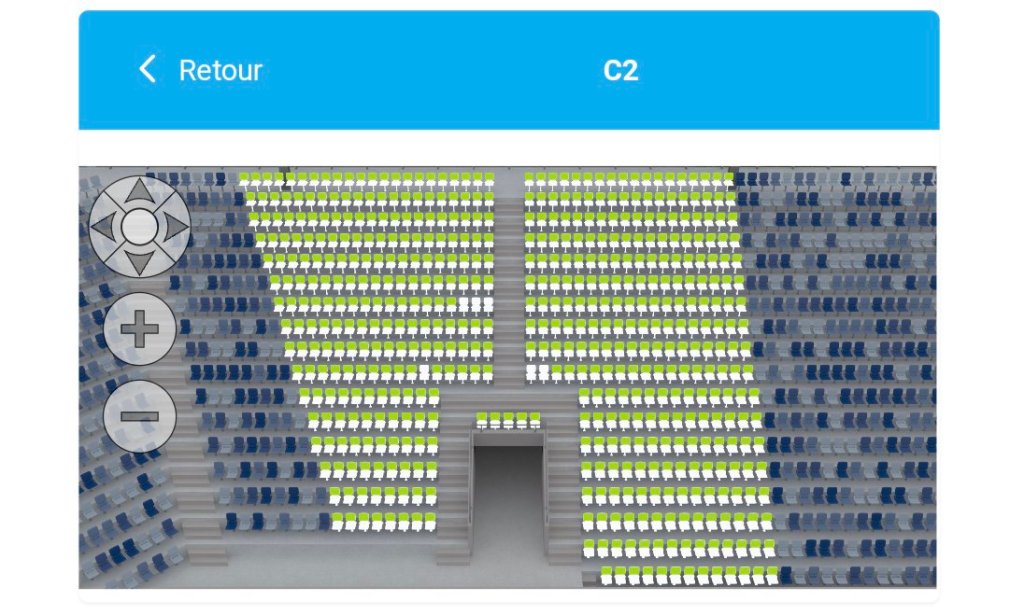 Juste à côté du secteur C1, c’est où se trouveront les EdS et beaucoup de supporters servettiens ! Les places disponibles sont en vert.