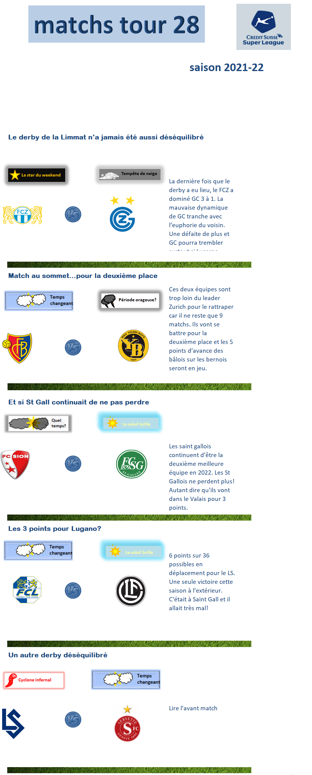 J-2: Le temps sur la Super League: tour 28