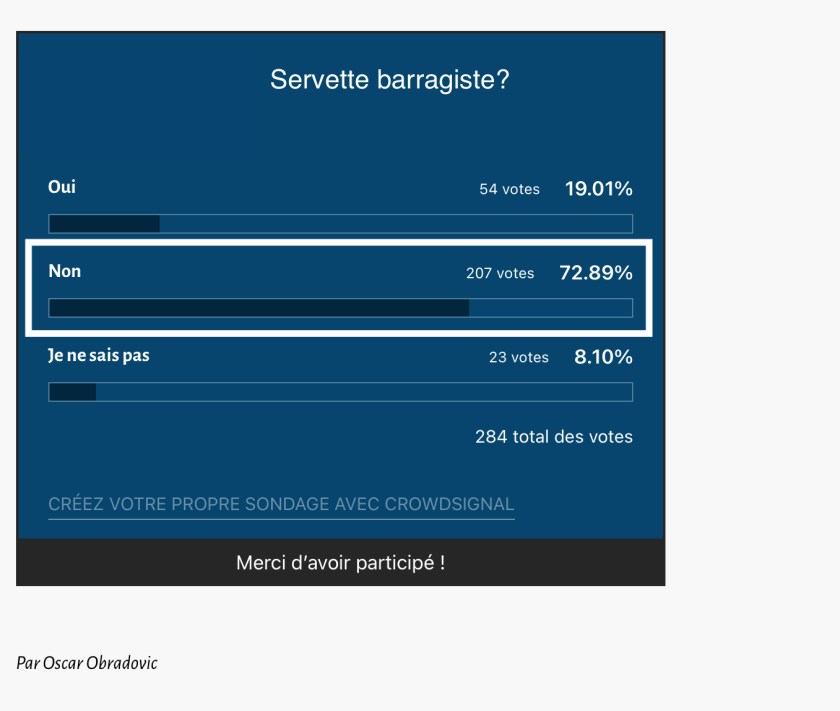 Vous avez le reflet de la réalité. Le sondage dit clairement que les gens ne pensent pas faire les barrages alors que l’expression des commentaires dit plutôt le contraire. Les insatisfaits ou anxieux s’expriment non seulement à travers le sondage mais aussi par les commentaires. Le sondage est plus fiable en termes de représentation et d’avis collectif.