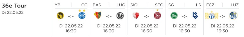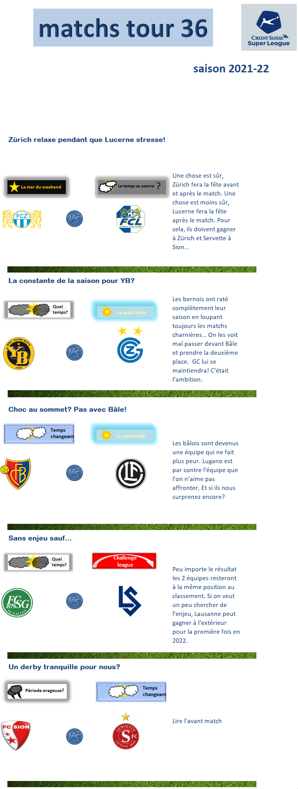 Le temps sur la Super League: tour 36