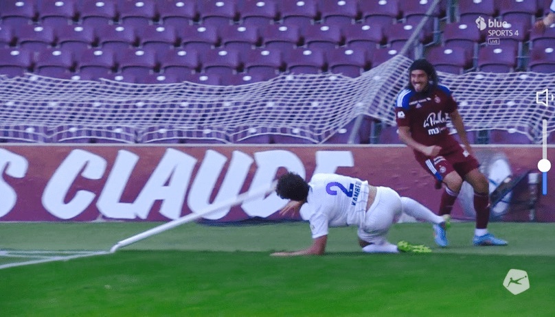 Le Gabet il n’a honte de rien !!! Et d’ailleurs tout ceux qui ont joué au foot savent que le défenseur sur cette action n’a qu’une idée c’est d’envoyer Crivelli sur les panneaux publicitaires. Tombé sur le mauvais taureau qui lui a bien fait comprendre…
