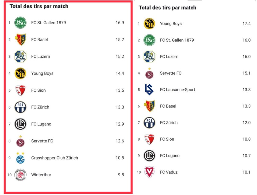 Voici une comparaison des statistiques entre cette saison et les dernières qui démontre les différences entre le Servette d’aujourd’hui et celui des dernières années.