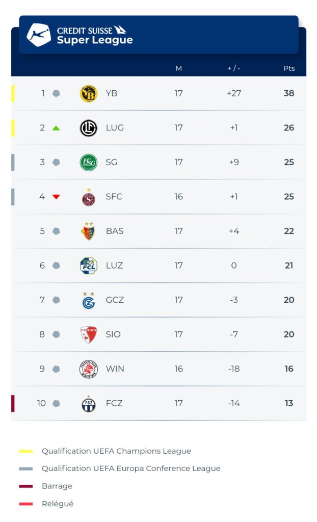 Servette voit aujourd’hui St-Gall le rejoindre au classement, alors que Lugano prend la seconde place du classement, avec un match en plus.