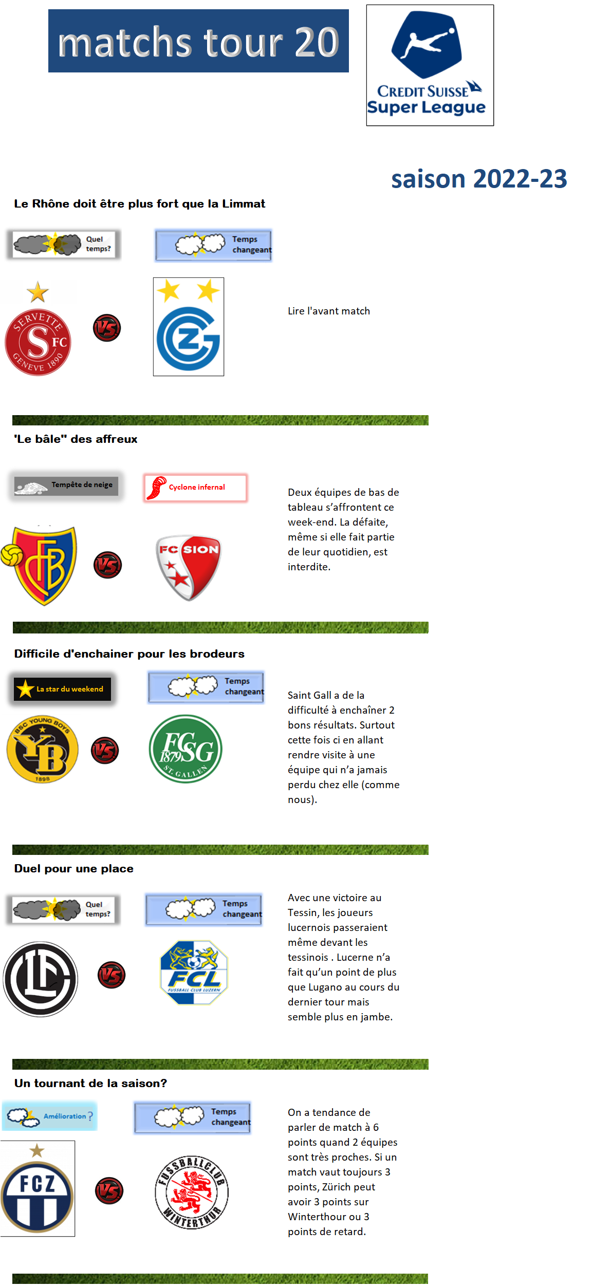 Une réflexion sur « Le temps sur la Super League tour 20 »