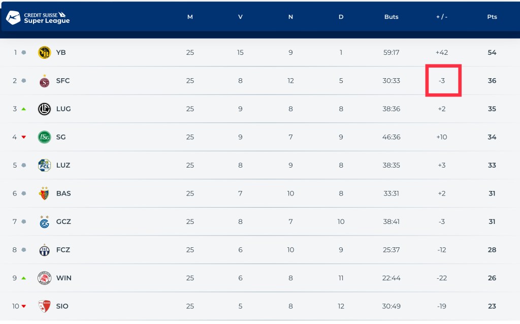 Deuxième avec -3 comme GC qui est 7eme… Servette est il à sa place?