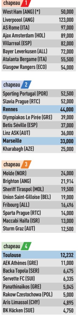 Le groupe de m. (ou, pardon, moins attrayant) : Rangers ou Atalanta, Kharabagh, Molde ou Maccabi Haïfa