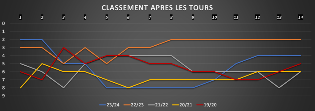 Comparaison avec les saisons précédentes au niveau du classement