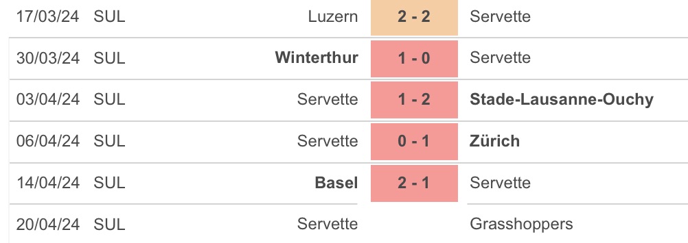 La série de contre performance des zurichois est la pire de Super League avec seulement 2 points de pris depuis le 17 février et la victoire contre le FC Bâle. Autant dire que Servette ne peut pas trouver une équipe plus mauvaise.