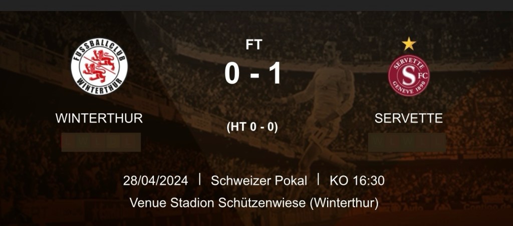 Photo srf.ch- copyright. Servette s’est ouvert les portes de la final de Coupe de Suisse à Winterthour