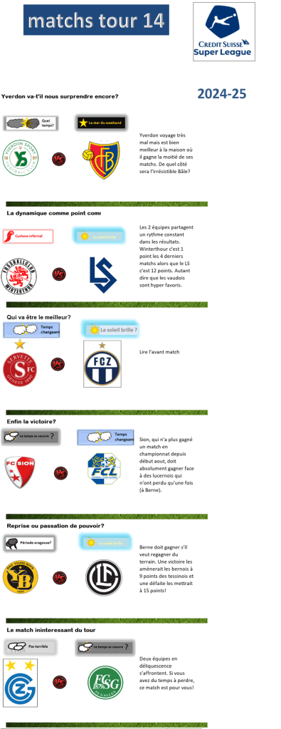 6 réflexions sur « Le temps sur la Super League – Tour 14 »