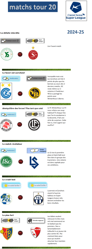 Le temps sur la Super League – Tour 20 Par Oscar Obradovic Évaluez ceci :Partager : Partager sur Facebook(ouvre dans une nouvelle fenêtre) Facebook Partager sur X(ouvre dans une nouvelle fenêtre) X Envoyer un lien par e-mail à un ami(ouvre dans une nouvelle fenêtre) E-mail Partager sur WhatsApp(ouvre dans une nouvelle fenêtre) WhatsApp J’aime chargement… Similaire