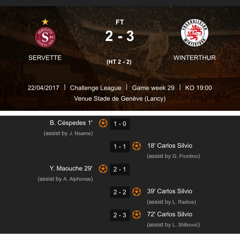 Depuis cette défaite c’est 5 victoires et 4 matchs nuls pour nous contre Winterthour. C’est seulement 2 victoires et 3 nuls à Genève pour Servette depuis leur retour en Super League!
