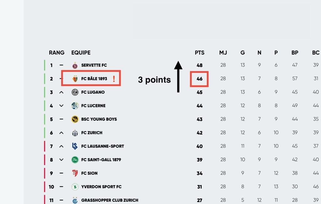 Derrière nous, seul Bâle , qui va à Winterthour dimanche, peut passer devant nous après ce tour puisqu’il ont 2 points de retard et une différence de buts largement supérieure à la notre.