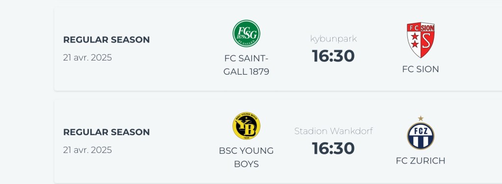 le fcz ne gagne pas à berne. Le LS gagne contre Lugano et le SG fait 1-1 contre Sion 🙂