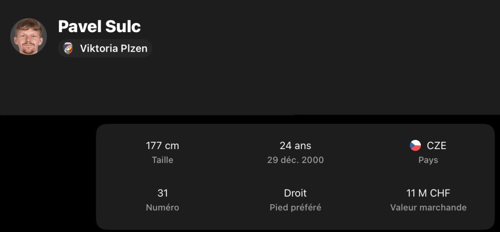 Informations provenant de transfermarkt.com – copyright- Au niveau international aussi, Sulc rayonne
