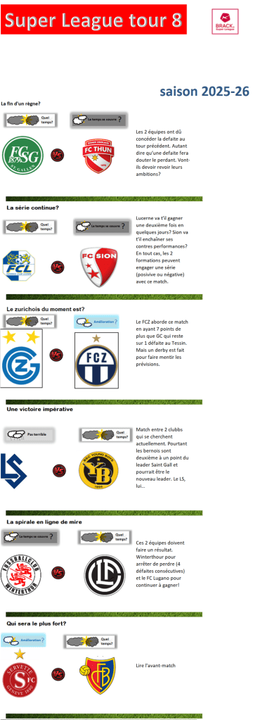 Le temps sur la Super League- tour 8 Par Oscar Obradovic Évaluez ceci :Partager : Partager sur Facebook(ouvre dans une nouvelle fenêtre) Facebook Partager sur X(ouvre dans une nouvelle fenêtre) X Envoyer un lien par e-mail à un ami(ouvre dans une nouvelle fenêtre) E-mail Partager sur WhatsApp(ouvre dans une nouvelle fenêtre) WhatsApp J’aime chargement… Similaire