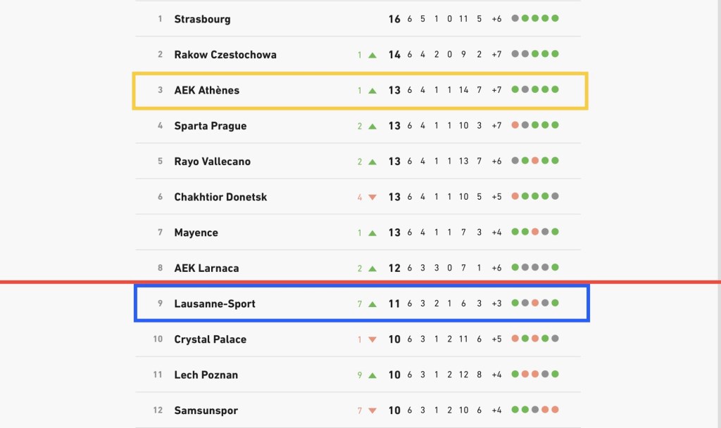 En effet, dans un autre match (AEK Athènes – Universitatea Croiva), un but de Kutesa les a fait basculer du mauvais côté du classement (8 ème => 9 ème). Dereck a marqué dans le temps additionnel du match à Athènes et le LS était, avant cela, en huitième de final et pas en barrages.On peut donc dire que les genevois ont réussi à déranger les vaudois 😂!