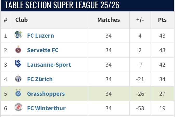 En fond de classement depuis son retour dans l’élite helvétique en 2021, les sauterelles n’arrêtent pas de tutoyer les fonds. Ils vont finir par redescendre en Challenge League.