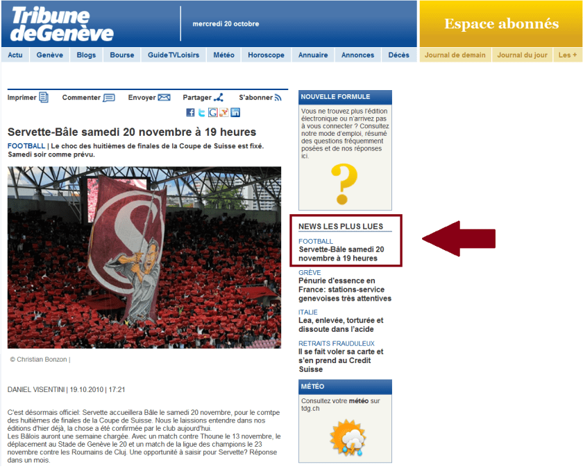 Depuis plusieurs semaines, le SFC fait un véritable carton sur le site internet de la Tribune de Genève.