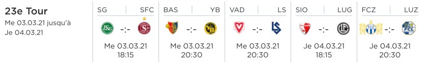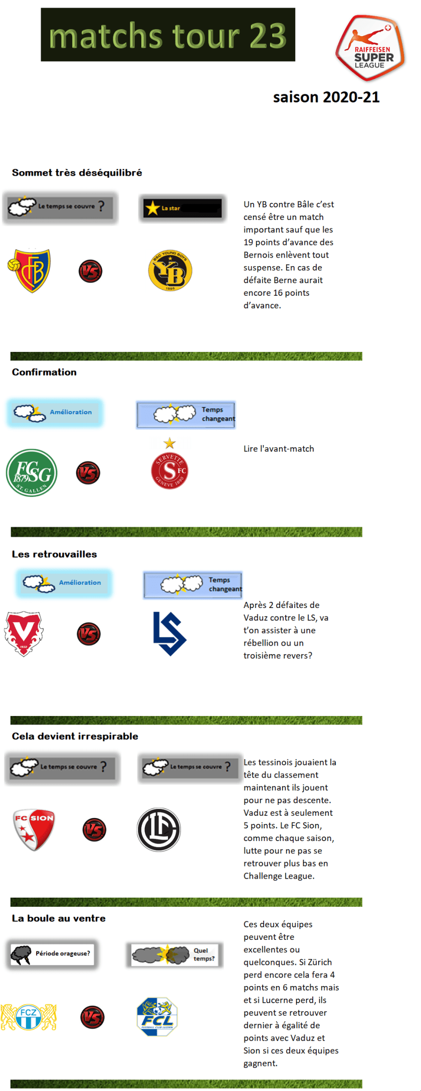 Le temps sur la Super League tour 23
