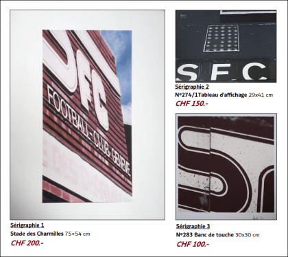 Nous vous proposons dès aujourd’hui une vente exceptionnelle de Sérigraphies de l’artiste genevois (et immense fan du SFC!) dédiées au Stade des Charmilles.